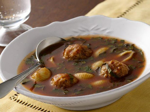 1 In 3-quart saucepan, heat broth and water to boiling. Add pasta and meatballs; return to boiling. Cook 7 to 9 minutes or until pasta is almost tender. Do not drain.