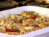 Cut the cores from the tomatoes, removing as little as possible. Cut them in half crosswise and, with your fingers, remove the seeds and juice. Place the tomato halves in a baking dish.