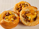 Flatten each biscuit and place into a greased muffin tin covering bottom and sides forming a cup.