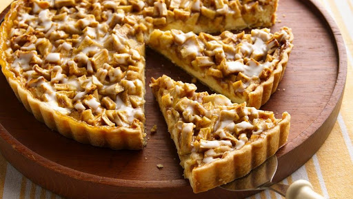 Place tart pan on heated cookie sheet on bottom rack in oven. Bake 30 to 35 minutes or until filling is set, apples are tender and crust is light golden brown. Cool on cooling rack about 30 minutes. Refrigerate at least 4 hours or overnight.