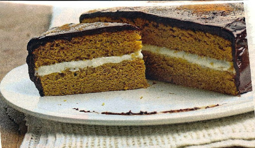 If Chocolate Cream icing is too thin, cover and chill 30 minutes until of spreading consistency. Too thick, add a tsp of milk or cream. Spread over top and sides of cake. Sprinkle lightly with pumpkin pie spice. Chill cake at least 1 hour before serving.