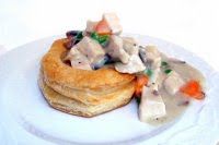 When chicken mixture is bubbling stir in yolk mixture and blend.