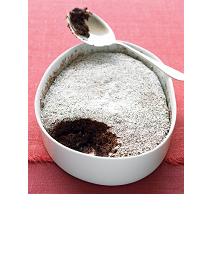 Transfer batter to prepared baking dish. Set dish in a roasting pan, and pour enough boiling water into pan to come about 1 inch up side of dish. Bake until puffed and just set (center of cake should barely move when jiggled), 25 to 35 minutes. Let cool 5 minutes; dust with confectioners' sugar just before serving.