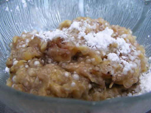 - 2/3 cup sugar (the riper the banana you begin with the less sugar you need)