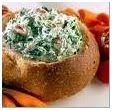 Either hollow out loaves of bread and put dip into the hollow in the bread or serve dip in a bowl with pieces of the bread.