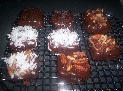 Add all ingredients and put into food processor, blend well. Add carob nibs or nuts or coconut. make into bars. Melt unsweetened bakers chocolate or carob nibs and add 4 packets of stevia to start to sweeten then taste. Add more if you want it sweeter. Then dip and keep in fridge and enjoy! These are a protein/fat mine made 8 and I could not eat more than one at a sitting. You won't be disappointed! Mmmm