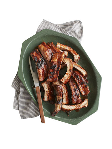 3. Grill. If ribs have been refrigerated, bring them to room temperature. Heat an outdoor gas or charcoal grill to medium-high. Grill ribs, brushing with sauce and turning several times, until slightly charred and glazed, 10 to 15 minutes.