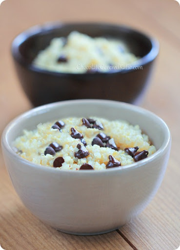 Breakfast Quinoa: Rinse quinoa well in a fine mesh strainer. Drain. Combine the raw quinoa with the salt and water, and bring to a boil uncovered. When it starts to boil, cover and cook on low for 20 minutes or until the water is absorbed and quinoa is light and fluffy. Uncover, add the milk of choice and optional raisins and cinnamon (if using), and bring back to a boil. Turn heat to low-medium. Cook for 25-30 minutes, stirring very occasionally, until the breakfast quinoa texture is thick like oatmeal. Turn off the heat, and stir in the vanilla and sweetener of choice. Makes 4 servings. NOTE: When found in nature, quinoa has a natural coating of bitter-tasting saponins. These occur naturally in the quinoa to prevent insects from eating the plant. Most packaged quinoa will be pre-washed; however it is always a good idea to wash the grain again, just in case.