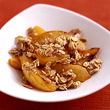 To serve, place 6 slices of apple in each of 4 shallow bowls and top each with about 2 tablespoons of oat topping.