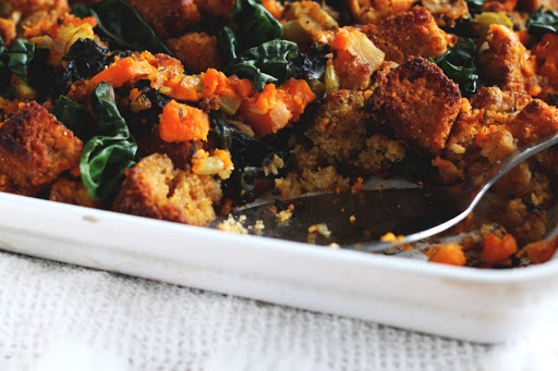 Sweet Potato, Chipotle + Chard Cornbread Stuffing