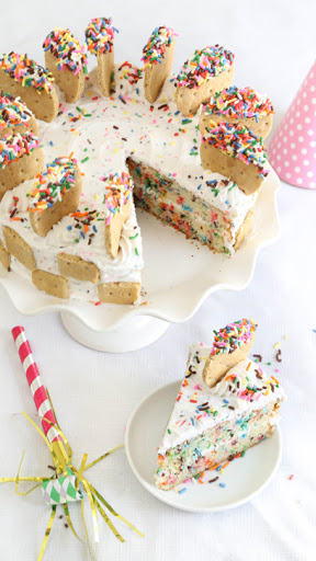 9 Sprinkle top of cake with additional decors. Store cake loosely covered at room temperature.