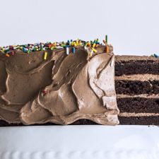 Grease a 9x13 sized baking pan and spread the cake batter into it. Drop in chocolate chips and nuts (if used) and bake in a preheated oven at 350° F, for not more than 30-35 minutes.
