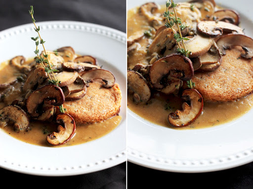 Place a warm biscuit on a plate and ladle about a cup of the mushroom/gravy mixture on top. Garnish with a few minced thyme leaves or black pepper.