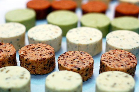 * Once the ingredients have been combined, place the butter mixture in the center of a piece of waxed paper or plastic wrap and shape it into a cylinder. Twist the ends of the plastic wrap, place in a heavy-duty ziplock bag and refrigerate until firm.