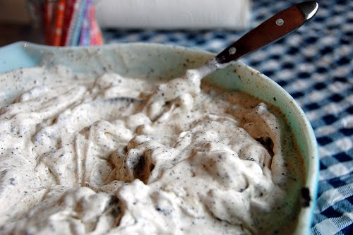 In a large bowl, beat egg yolks; stir in milk, water and vanilla. Fold in cookies and whipped cream. Pour into aluminum foil lined 9x5 inch loaf pan or other 2 quart container. Cover and freeze at least 6 hours.