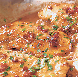 4. Pour off the excess fat. With the pan over medium-high heat, add the Marsala and scrape up any browned bits from the bottom of the pan. Cook until the Marsala is reduced by about a quarter. Stir in the cream and boil until you get a nicely thickened sauce. Return the chicken and pancetta to the pan and turn the cutlets over to coat. Let them reheat for 30 seconds to 1 minute. Serve with the sauce and a sprinkling of parsley, if you like.