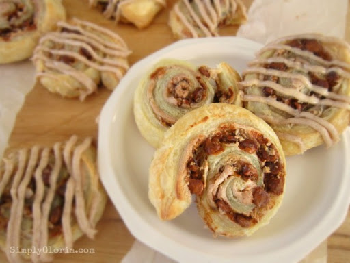 24.Pipe out and drizzle onto the tops of the pastry filled cinnamon swirls.