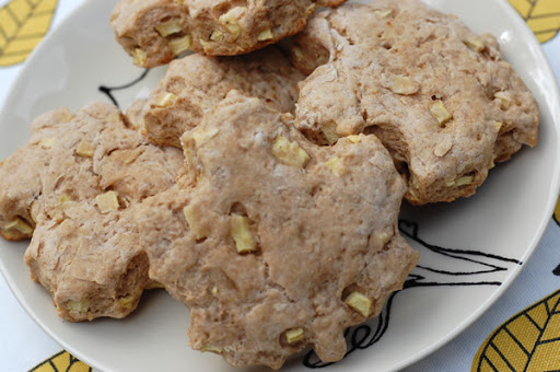 These biscuits bring the taste of apples to a perfect breakfast biscuit. Made with whole wheat and just a touch sweetness and cut out in maple leaves it bring fall right to your table. If you'd like them a little sweeter make an icing with some powdered sugar and a few drops of maple extract.
