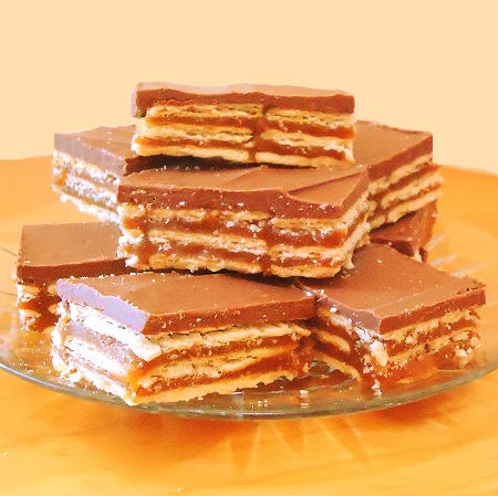 I found the recipe in the February issue of Family Circle magazine and its simplicity intrigued me. These are kid cookies that will never make it to a tea tray, but they are perfect for a cookie jar and you'll find that small hands can finish a batch with great dispatch. It's a simple confection that tastes a bit like a Twix bar