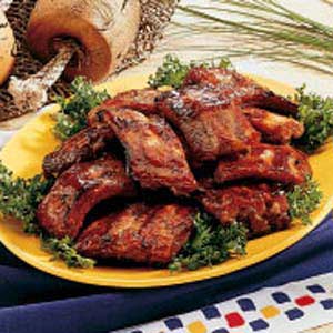Drain and discard marinade from ribs. Place ribs on a rack in a greased shallow baking pan. Cover and bake at 350° for 1 hour. Drain. Pour reserved marinade over ribs. Bake, uncovered, for 30-45 minutes or until meat is tender, brushing occasionally with pan juices.