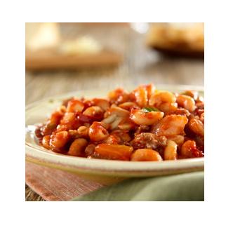 Add tomato sauce beans, chili powder, sausage, salt and pepper.