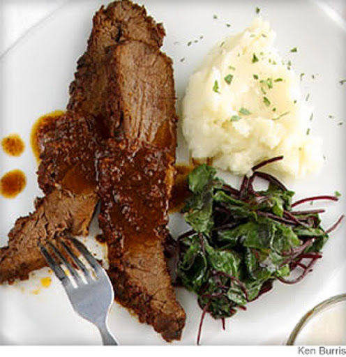 Remove the meat from the sauce. Let rest for 10 minutes, then slice against the grain. Skim the fat from the sauce in the pan; pour the sauce over the meat and serve (or follow make-ahead instructions).