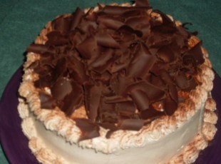 NOTE: For 2 (8 inch) round cake pans. In this pic 2 cake mixes were used, one made with coffee and one white and baked in 2 - 10 inch pans, making a nice thick cake to split into 2 layers each. The filling ingredients were also doubled.