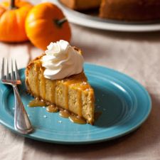 This amazing pumpkin cheesecake starts with a spicy gingersnap crust and gets even better—thanks to a drizzle of warm caramel and a sprinkling of pecans.