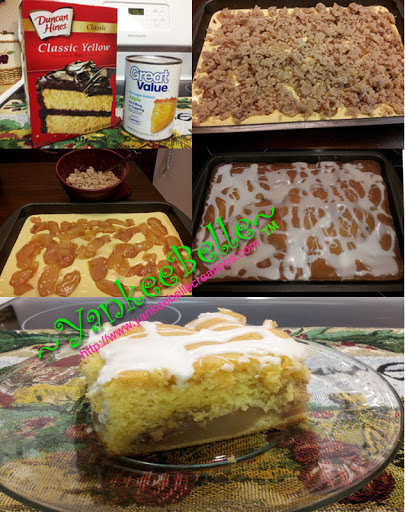 Preheat over to 350 degrees. Mix your cake mix per box instructions, and pour into a greased and floured cake pan. Time to add the apples! Spoon apple pie filling evenly across the top of the unbaked cake. Next, take your Streusel topping, and sprinkle it over the top of the cake mix and apples. Bake for 35-45 minutes or until toothpick inserted in center comes out clean. Let cool, and top with a simple Confectioner's Sugar Glaze drizzled frosting. Serve warm or cold…either way, this is moist, flavorful, easy, and amazing!