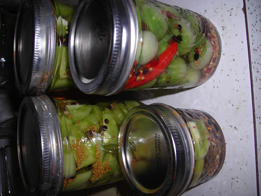 ■Add 1 T each of the seeds, 1 bay leaf and one chile to each pint jar. Double the quantities if you are using quarts.