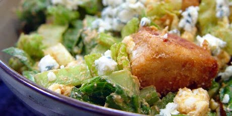 7. Put lettuce, celery and chicken into a salad bowl. Drizzle any excess chicken sauce over the salad and add the lemon juice.