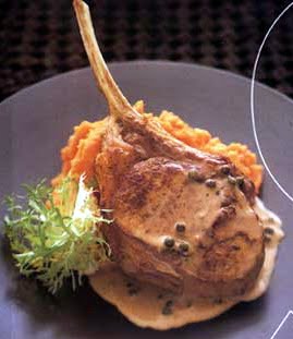 Place 1 chop on each dinner plate and pour sauce over each.