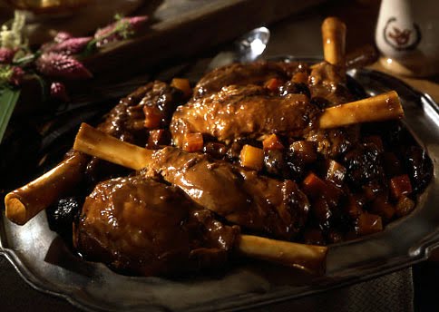 Cover roasting pan with foil; place in oven. Braise lamb until tender, turning every 30 minutes, about 21/2 hours. Transfer lamb to large rimmed baking sheet. Set pan aside.