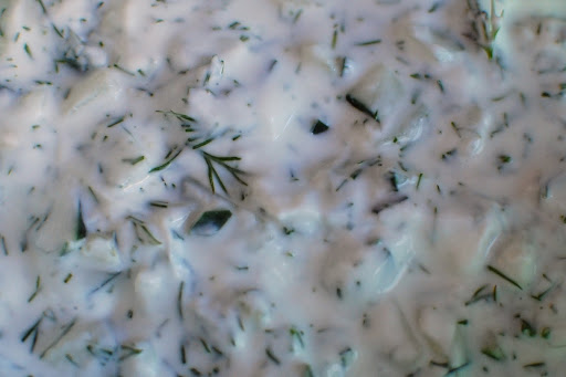 An easy, flavorful cucumber yogurt sauce for use with stuffed grape leaves or any food of your choice
