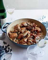 Nestle the chicken in the casserole; cover and braise in the oven for 1 hour, until tender.