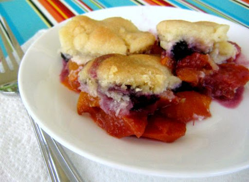 Take the dough by the handful and pat it into disks that are about 1/4-inch to 1/2-inch thick. Lay them on top of the fruit, continuing with the patties, until it is covered. Bake the cobbler at 350 degrees for about 45-50 minutes, until the crust is light golden brown. Let cool slightly, then serve with ice cream.