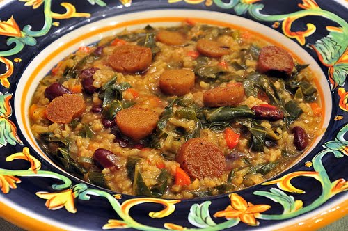 Gumbo, Seitan Sausages, Grilled Okra