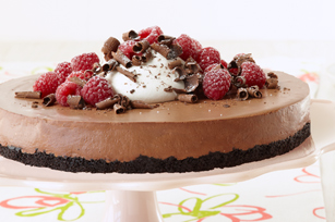 RUN knife around rim of pan to loosen dessert. Remove rim. Top dessert with remaining Cool Whip, raspberries and grated chocolate. Sprinkle with sugar. kraft kitchens tipsGelatine SuccessFor best results, make sure the gelatine is completely dissolved in the chocolate milk mixture before adding to the cream cheese.How to Shave ChocolateMicrowave remaining chocolate square on MEDIUM 30 sec. (Chocolate square should just be slightly softened.) Grate chocolate with a vegetable peeler to make shavings.prep time 30 min total time 3 hr 45 min