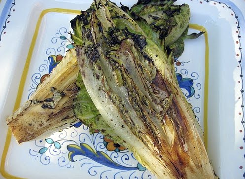 Mix dressing ingredients together and pour over grilled Romaine salad.