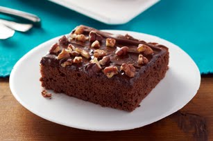MELT 2 chocolate squares as directed on package. Beat cake mix, dry pudding mix and next 4 ingredients with mixer until well blended. Add melted chocolate; mix well. Pour into 15x10x1-inch pan sprayed with cooking spray.