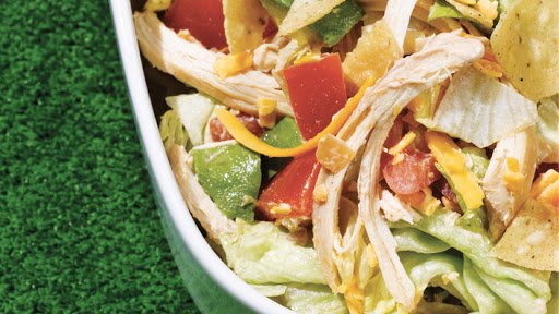 Add dressing to salad bowl, tossing well to coat. Sprinkle salad with crumbled tortilla chips.