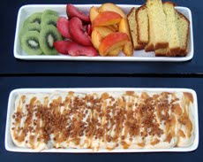 1. Using a hand or stand mixer, blend together the cream cheese, mascarpone cheese and brown sugar, until smooth, occasionally scraping down the side of the bowl with a spatula. Mix in the pudding and vanilla and blend until light and creamy. Transfer the dip to a wide shallow bowl, drizzle with the caramel sauce and sprinkle with the caramel bits. Serve with freshly sliced fruit/fruit skewers or wrap and refrigerate until needed.