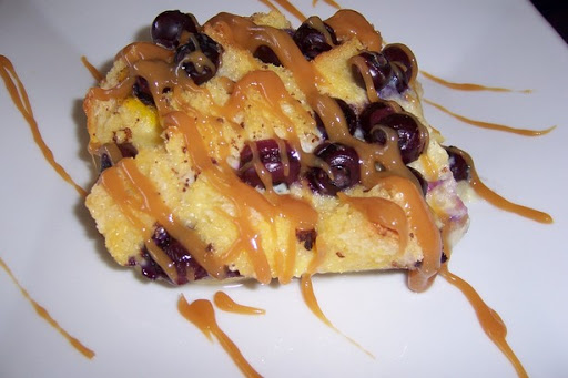 Blueberry Sourdough Bread Pudding in Caramel Sauce