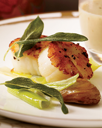 Scallops with Chestnut Sauce and Crisp Sage