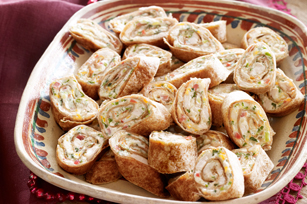SPREAD onto tortillas; roll up. Wrap individually in plastic wrap. Refrigerate 2 hours.