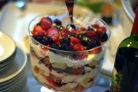 To build the trifle: put berries in a mixing bowl and toss them together sp they are evenly distributed. Fold the whipped cream into the chilled lemon curd to lighten it up into a mousse. Line a glass trifle bowl with pieces of pound cake to fit. Drizzle or brush the cake with the Lemoncello, spoon a layer of the lemon curd over the cake, and then a layer of mixed berries