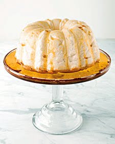 The airy meringue in this "floating island" is topped with a silky creme anglaise and a drizzling of sticky-sweet caramel. For this variation, the sweetened egg-white mixture is baked in a Bundt pan, which simplifies the process. Traditionally, floating islands are poached in water or milk.