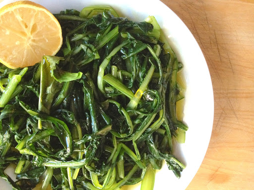 - 1/2 lb. (after trimming) assorted bitter greens - arugula, purslane, chard, mustard, dandelion or kale