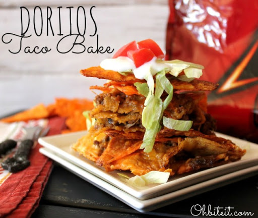 Continue layering until you’ve reached the desired height, and you are out of layering ingredients. Top the whole thing with a nice layer of the Doritos, cover and bake at 350 for approx. 25 minutes …