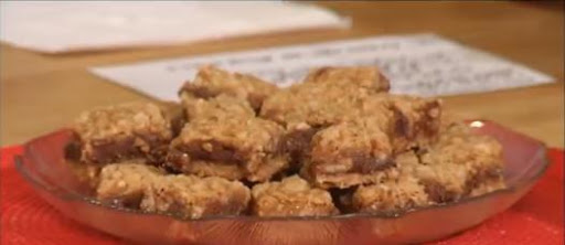 Remove from oven and place evenly the chocolate chips and pecans. Pour over the melted caramel mixture evenly. Cover with the rest of the flour oat mixture. Bake at 350 degrees for 15 minutes. Cool on a wire rack.